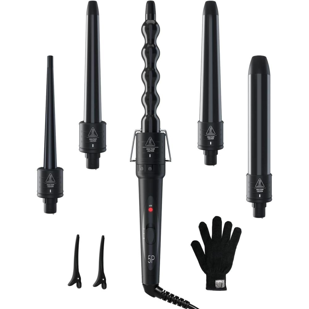 5 in 1 Curling Wand Set: Ohuhu Curling Iron Wand 5Pcs 0.35 to 1.25 Inch Interchangeable Ceramic Barrel Heat Protective Glove 2 Clips Dual Voltage Hair Curler for Girl Women Mother Christmas Gift Black(Black)