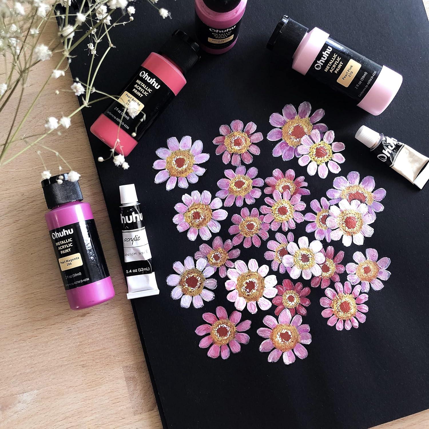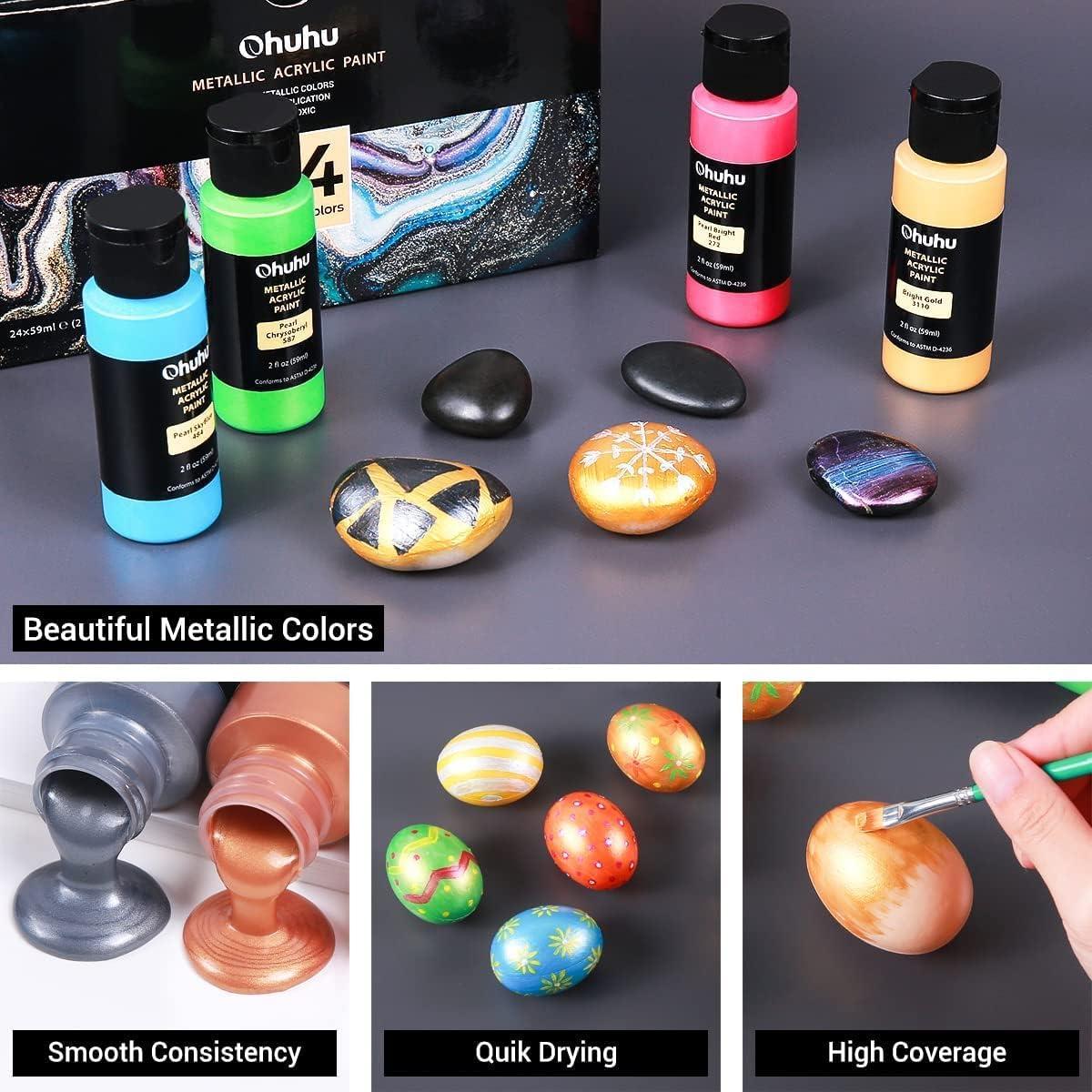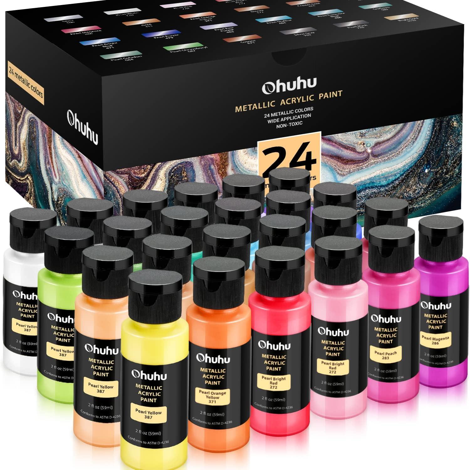 Acrylic Paint Set for Art, Ohuhu 24 Colors 2 Ounce/59ml Metallic Acrylic Paint Supplies for Wood, Fabric, Crafts, Canvas, Leather&Stone