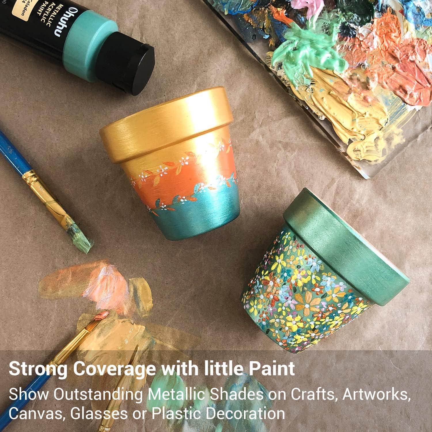 water-based, thick, blendable and mixable – These water-based paints are blendable and dilutable. You can mix and tune into more colors or dilute it with water for pouring artwork (notice: ohuhu metallic acrylic paints are thick and sticky, if you want to create your pouring artwork, don't forget to dilute it with water).