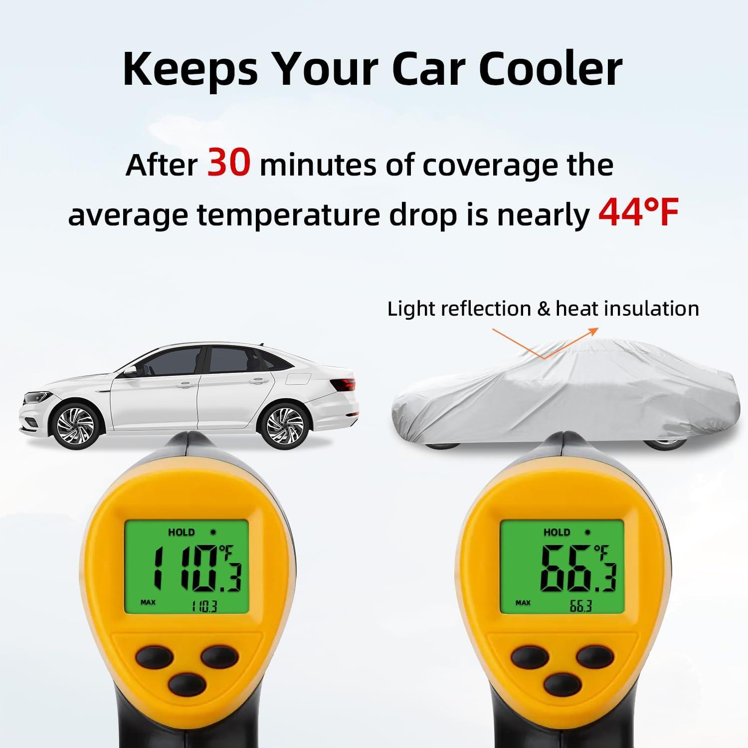 Comprehensive Protection and Easy Cleaning: Thanks to its advanced silver coating, this car cover provides superior protection against a wide range of potential hazards, including UV rays, bird droppings, wind, sand, leaves, scratches, dust, and more. And when it comes time to cleaning the cover, simply wipe it down with a damp cloth – any dirt or debris will slide off easily.