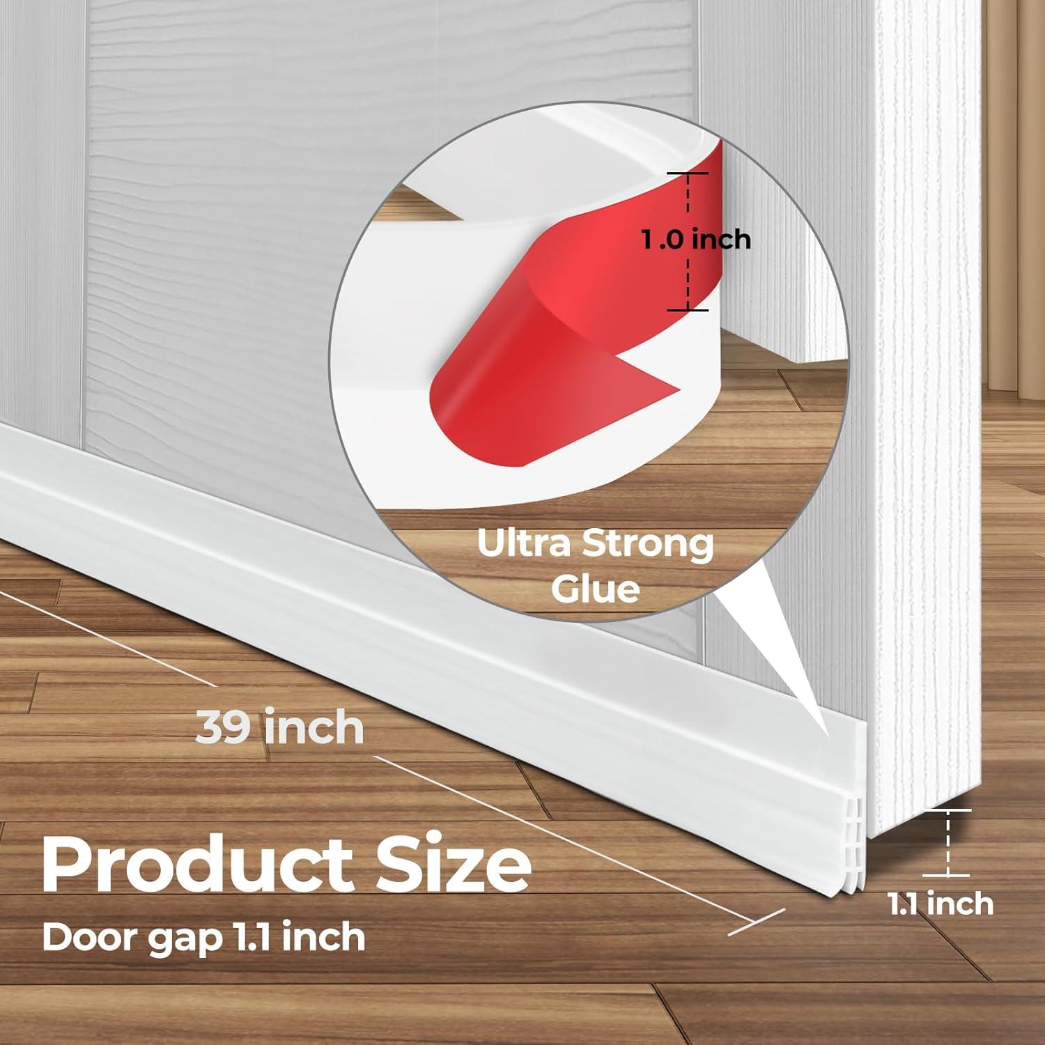 Widened Backing Adhesive: Strong backing adhesive widened to 1 inch, which makes the door draft blocker stay in place firmly