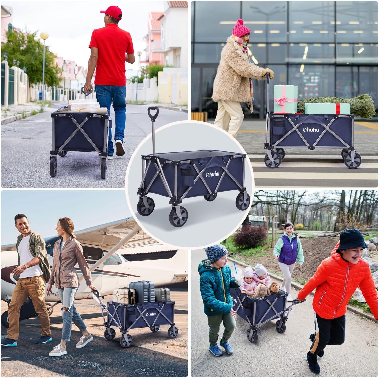Must-Have for Daily Use: Easily haul your gear with the Ohuhu utility wagon. Ideal for family outings, gardening, outdoor concerts, picnics, tailgating, and more, it is undoubtedly a simple, must-have cargo carrier