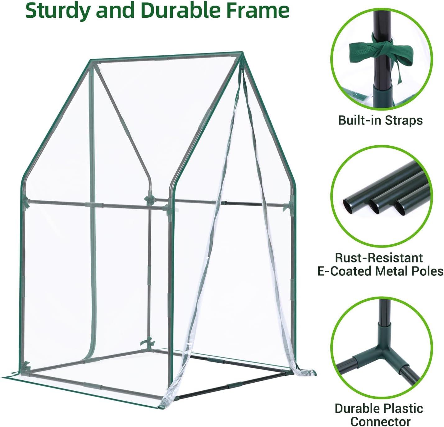 Durable Construction: This portable greenhouse is built to last. It features a thick tear-resistant PVC transparent cover that provides excellent protection for your plants. The reinforced metal frame with rust-resistant electrophoretic coating ensures durability and longevity, even in harsh weather conditions