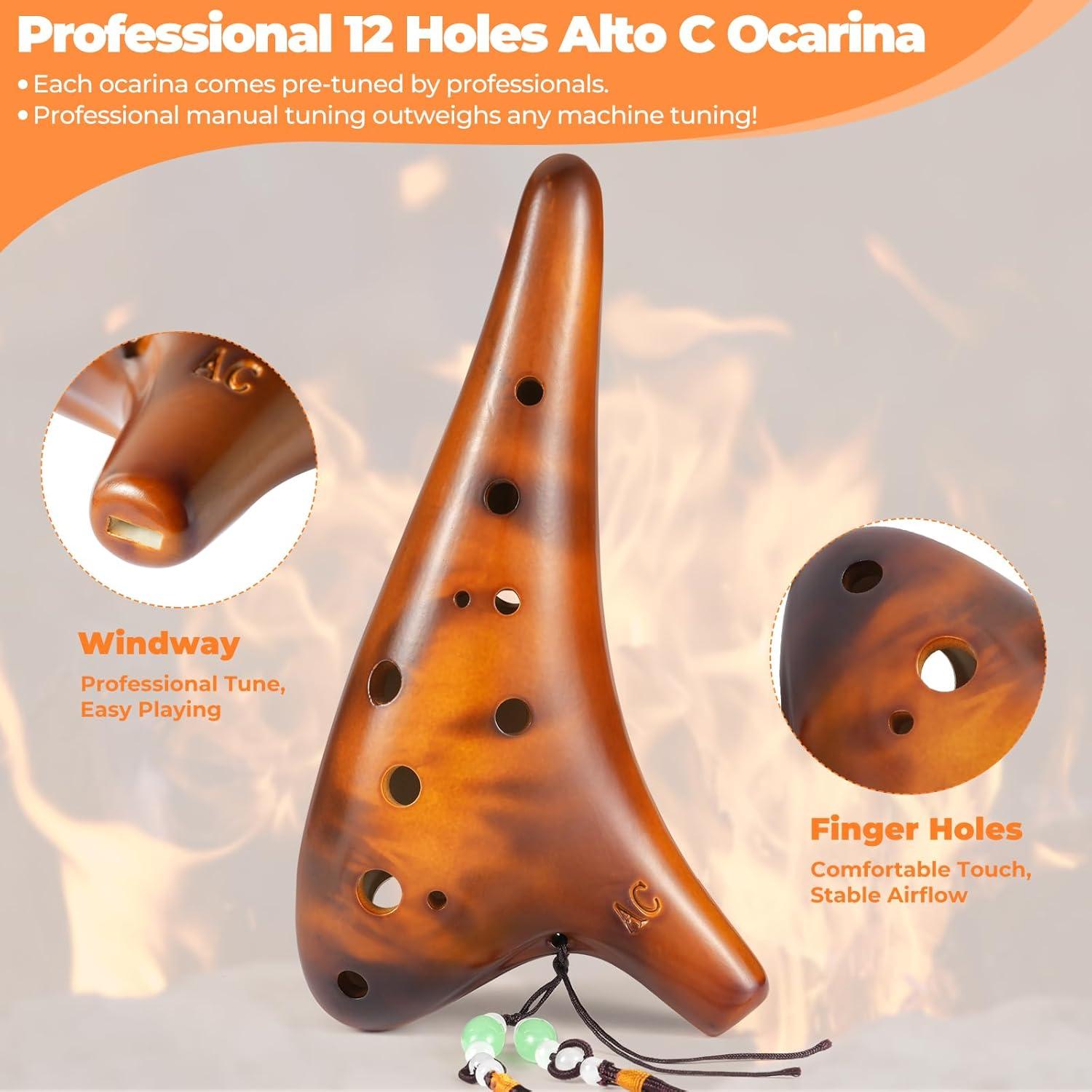 Perfect Touch and Sound: For each 12-hole ocarina (Alto C), it is professionally tuned and checked to make sure it gives a rich, natural, beautiful tone, unified resonance, a transparent medium tone and crystal clear high-pitch. Plus, thanks to the excellent grinding, you will feel that it is a sleek ocarina on your palms.