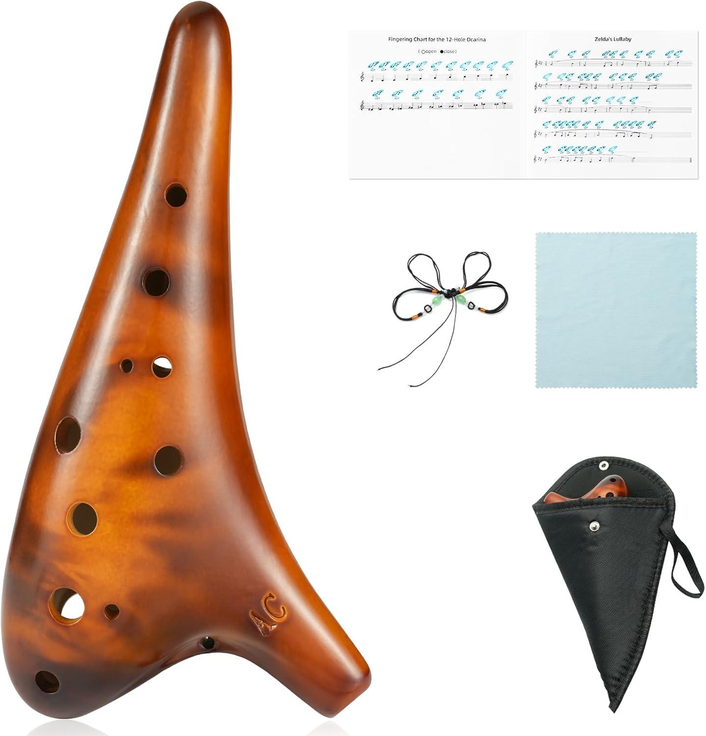 All-in-One Ocarina Set: Included in this deluxe set are a 12-hole ocarina, a song book, a neck-strap cord, a wipe and a protective bag. You'll love the neck strap, which prevents it from falling, as well as the protective pouch to keep it scratch-free. Simple songs are included in the songbook.