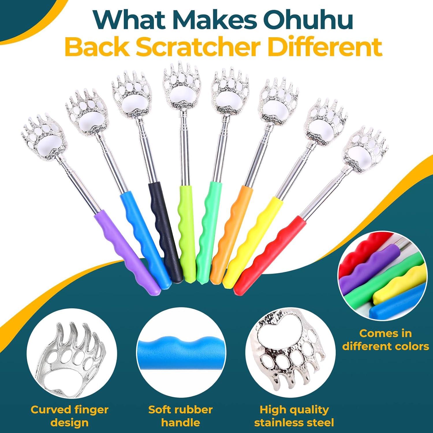 Telescoping Back Scratcher: Ohuhu scratchers extend from 8.3 inches to 22.4 inches. They meet the required length of the human back. effortlessly reaching your back, foot, head, and other spots you can't reach. You no longer have to search for a friend or your wife to get that itch off your back