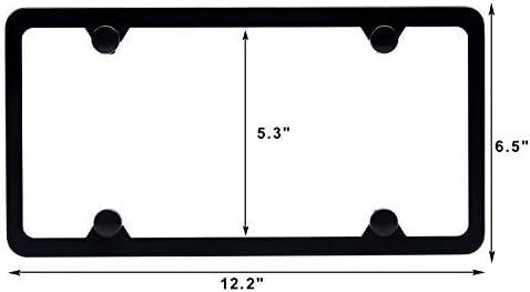 Ohuhu Black License Plate Frames, 4 Hole Matte Aluminum 2 PCS Slim License Plate Frame with Screws Caps (Black)