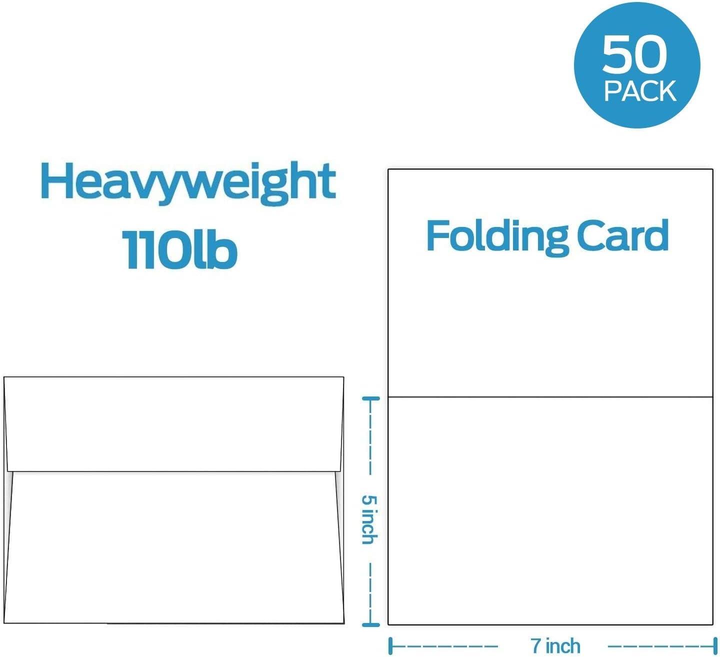 Ohuhu Blank White Cards and Envelopes 50 Pack – 5″ x 7″ Heavyweight Folded Cardstock and A7 Envelopes for DIY Greeting Cards Wedding Birthday Invitations Baby Shower Thank You Cards and All Occasions(A7 (5×7))