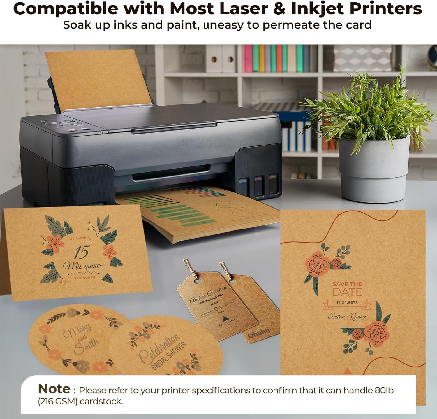 Create Your Own Handmade Cards – Each pack comes with 100 sheets of 8.5” x 11” double-sided kraft cardstock, perfect for a wide range of projects and long-lasting use. This 80 lb/216 gsm card stock is thick, durable, and printer-friendly, with a premium feel that resists wrinkles and tearing. It’s an excellent choice for making product labels, gift tags, and other custom tags.