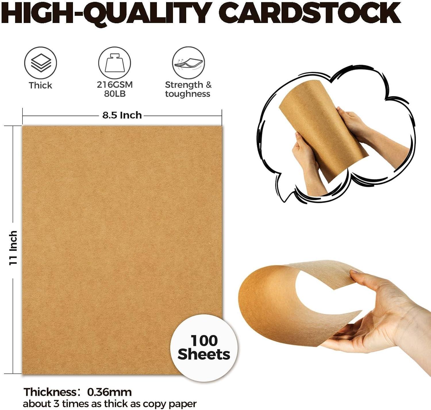 Ohuhu Brown Kraft Cardstock Thick Paper 100 Sheets – 8.5″ x 11″ Heavyweight 80 lb/216 gsm Card Stock for Crafts and DIY Card Making(Brown)