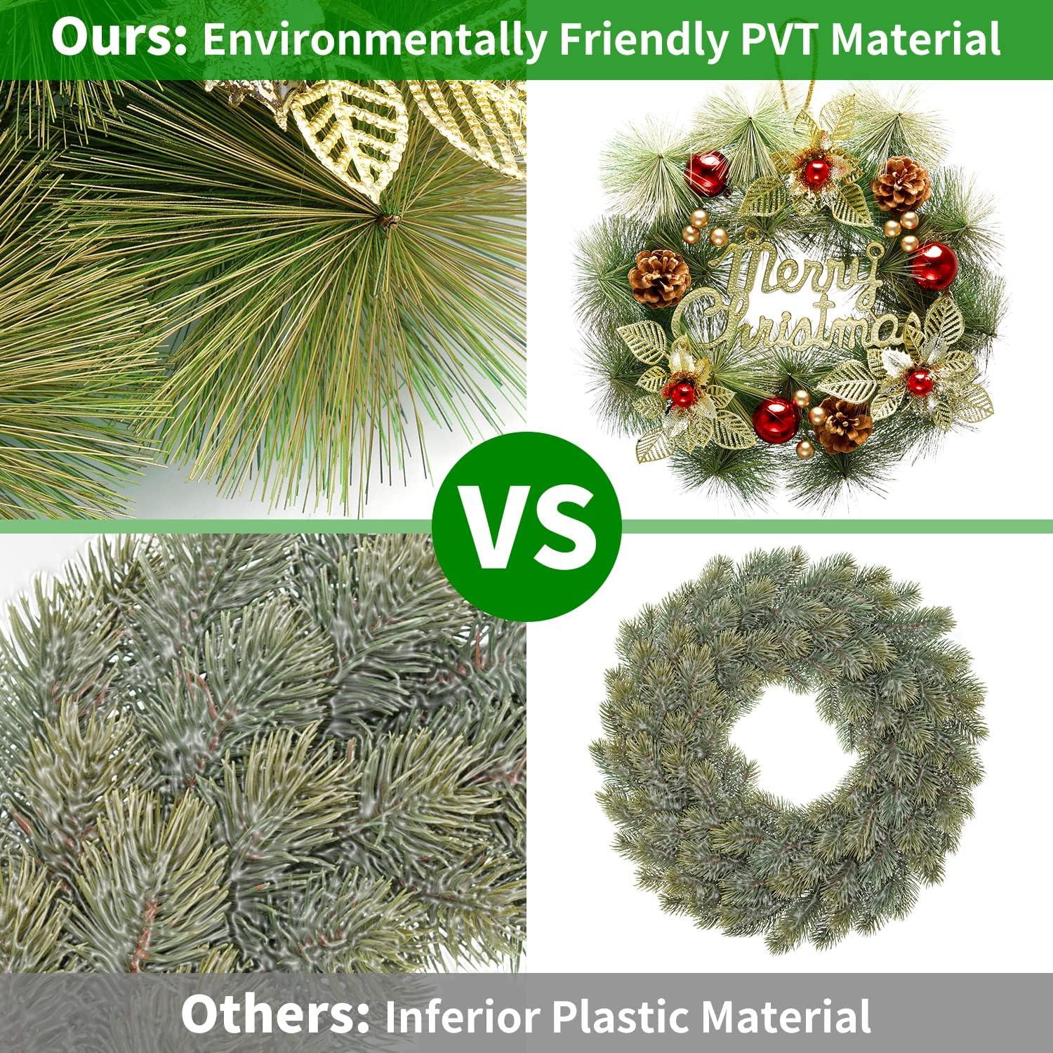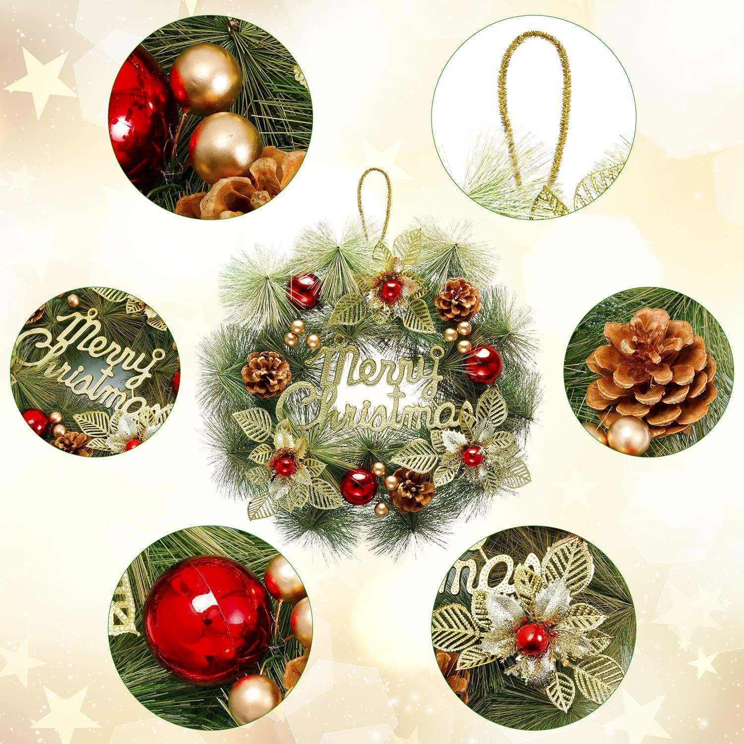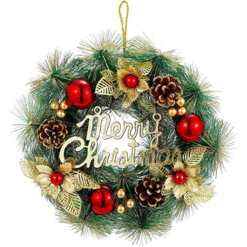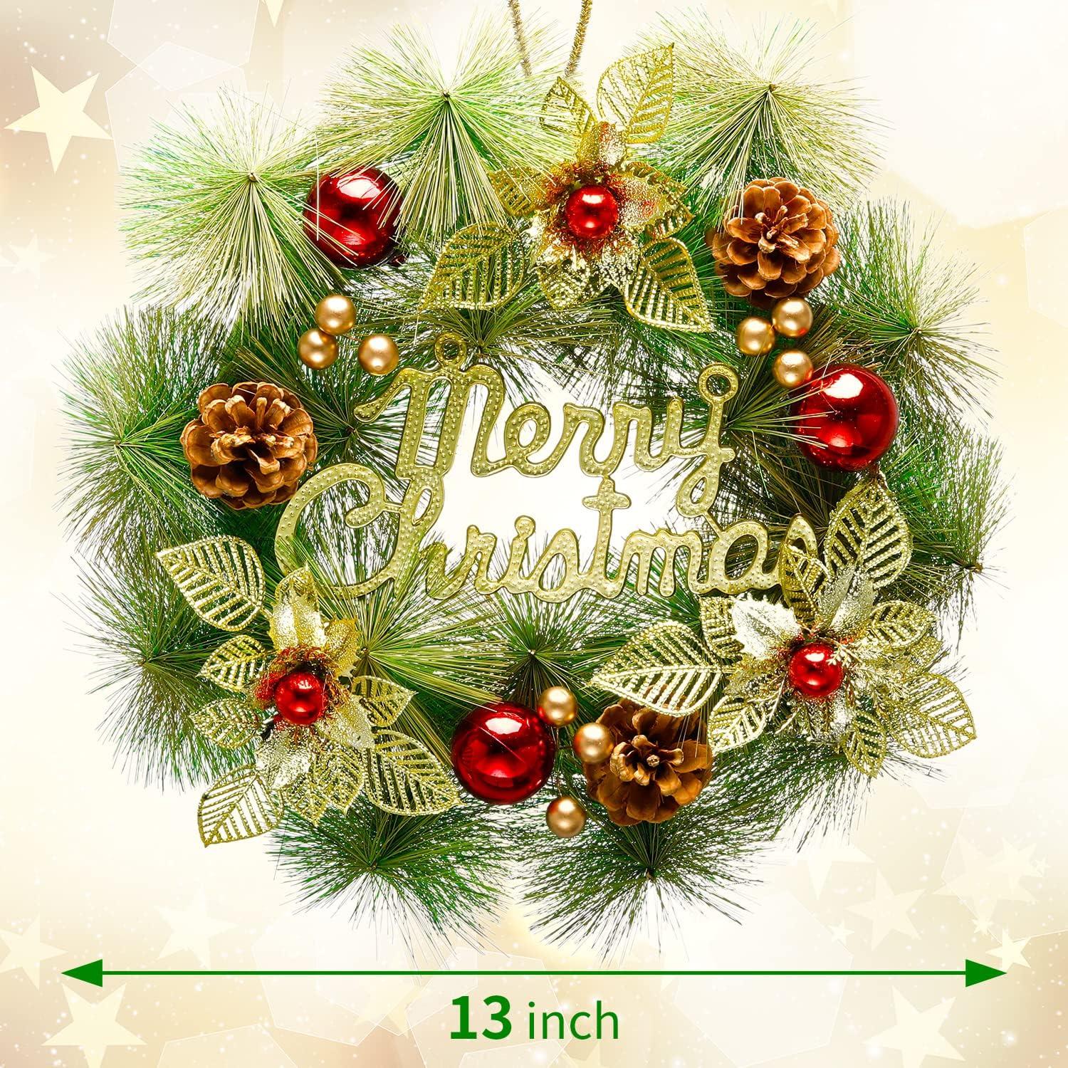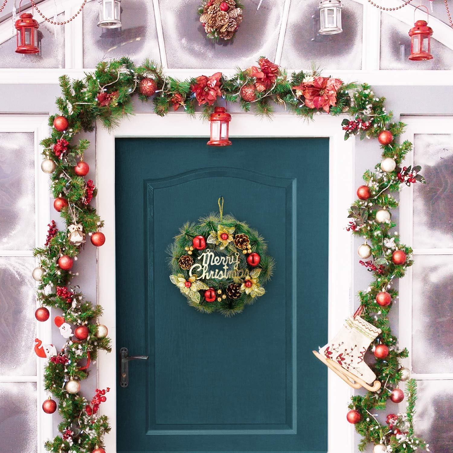 Ohuhu Christmas Wreath, Artificial Christmas Wreaths, Xmas Pine Wreath Garland, Wall Hanging with Gold Leaves, Red Balls, Pine Cones for Front Door Christmas Decorations