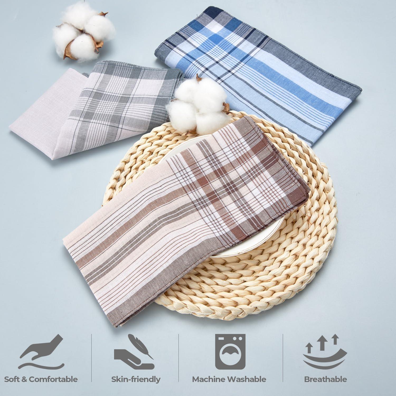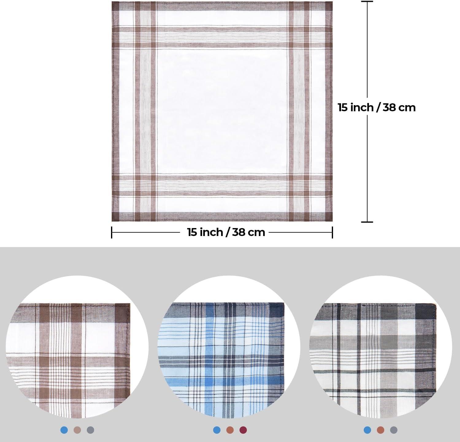 Ohuhu Handkerchiefs for Men, 12PCS 100% Cotton Classic Pocket Squares Set, Gift(Light Plaid – 3 Colors)