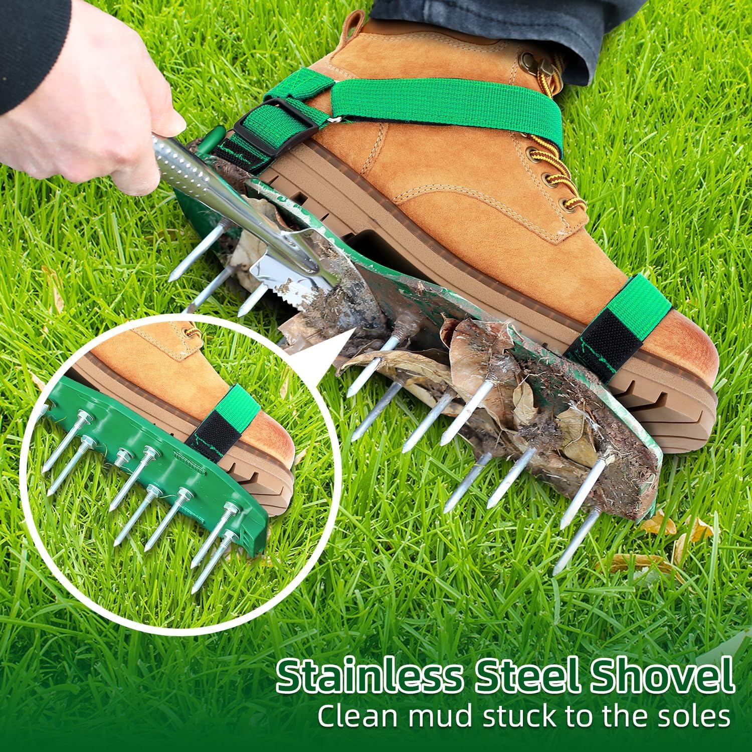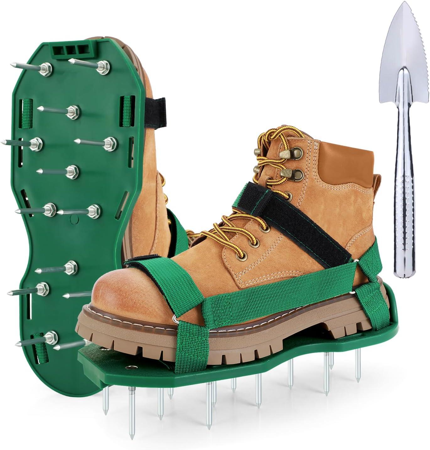 Ohuhu Lawn Aerator Shoes with Hook & Loop Straps, All New Unique Design Free-Installation Heavy Duty Spiked Aerating Sandals, One-Size-Fits-All for Yard Patio Lawn Garden(green)