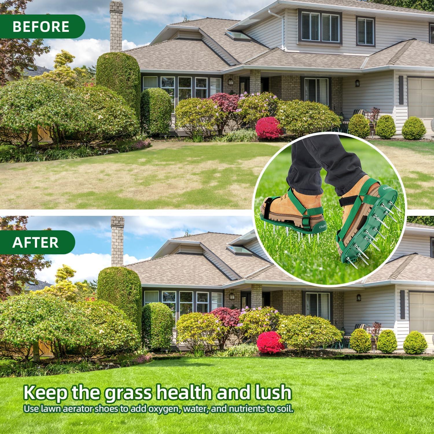 No Installation Required: Skip all the hassle of bulky, expensive equipment and just take a stroll through your yard! All you have to do is to strap on the Ohuhu lawn aerator sandals and walk around your lawn, no assembly or prep required. You’ll have a gorgeous lawn before you know it!