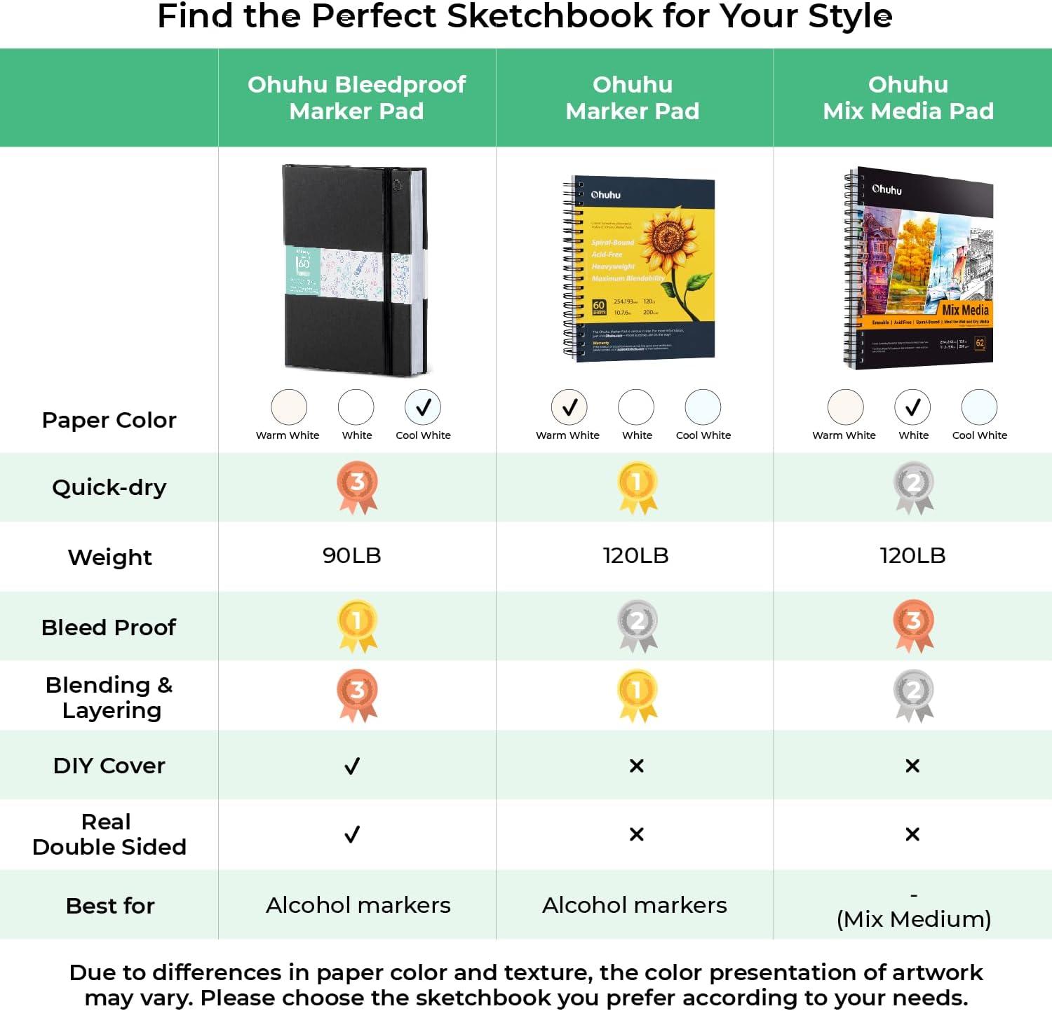 Bundle Included: Ohuhu Markers + Bleedproof Marker Pad 5.5″x8.5″