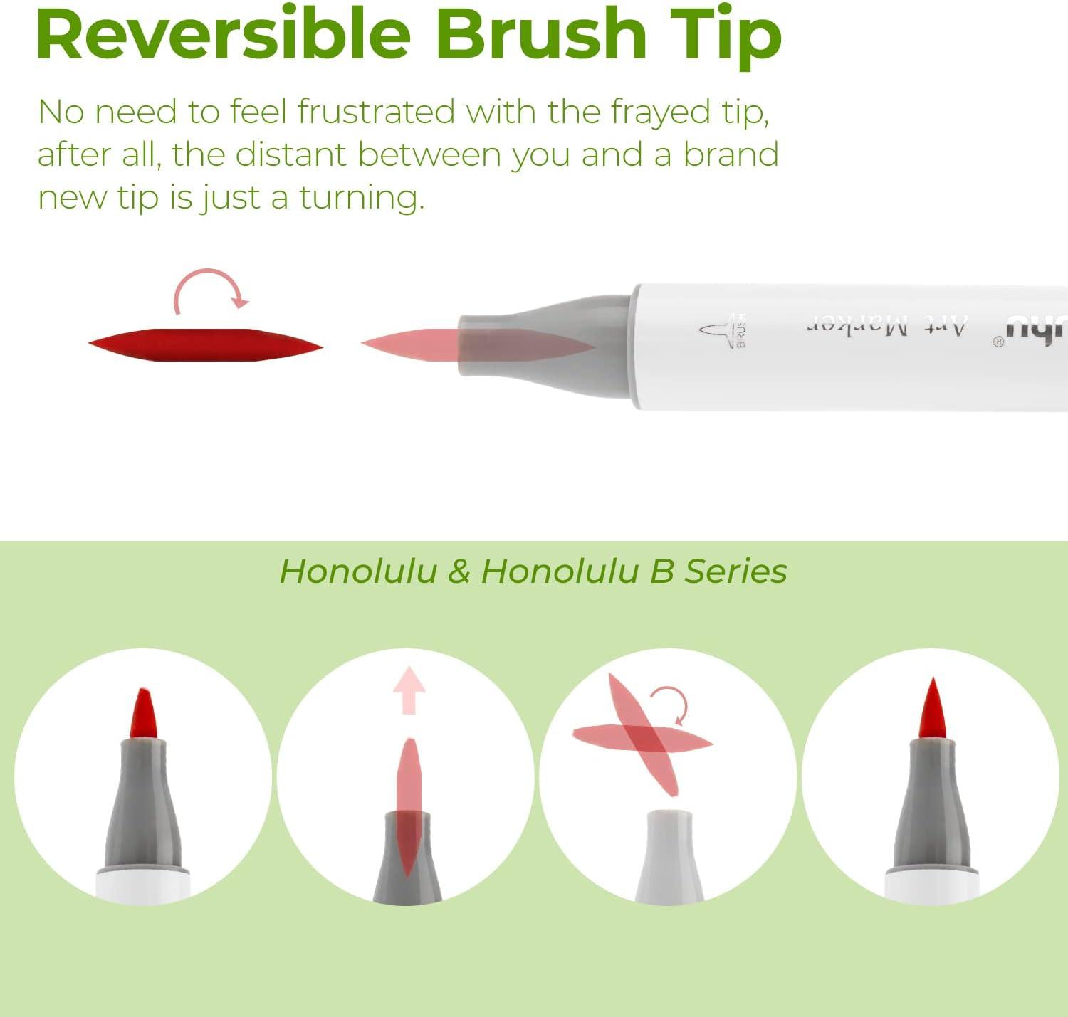 Both sides of our brush tip can be used. No need to feel frustrated with frayed tips, after all, the distant between you and a brand new tip is just a turning