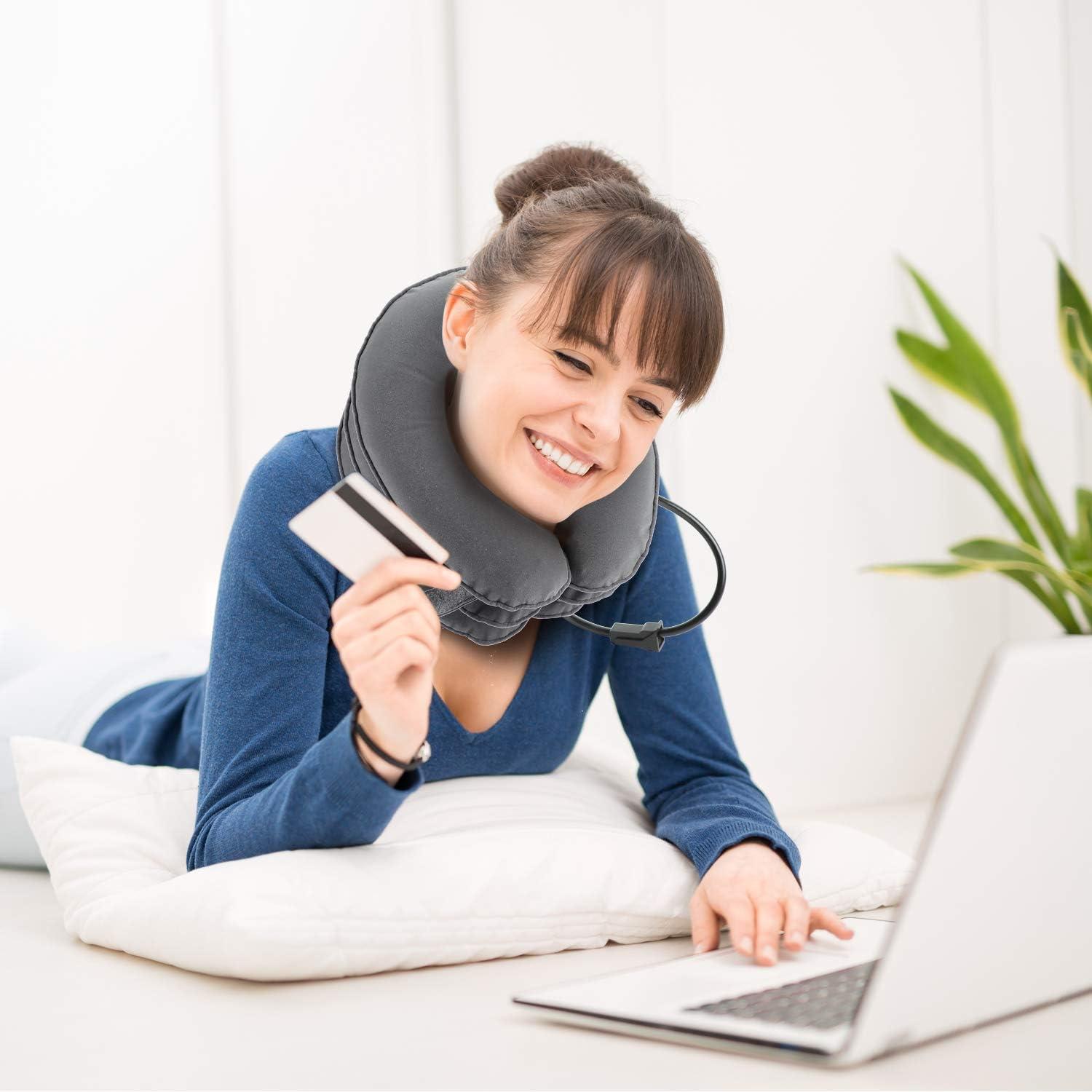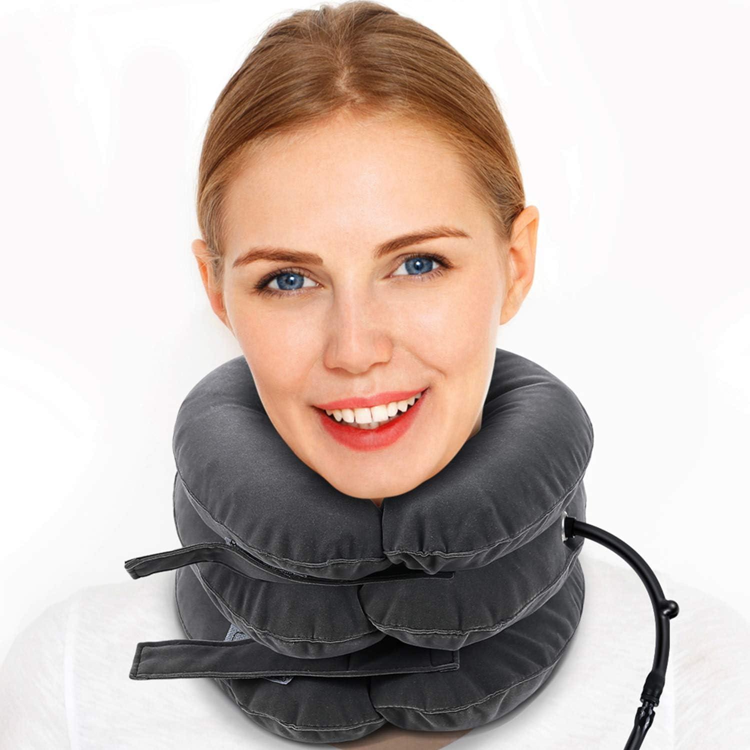 Ohuhu Neck Cervical Traction Collar Device for Neck and Back Dark Grey (Dark Grey)
