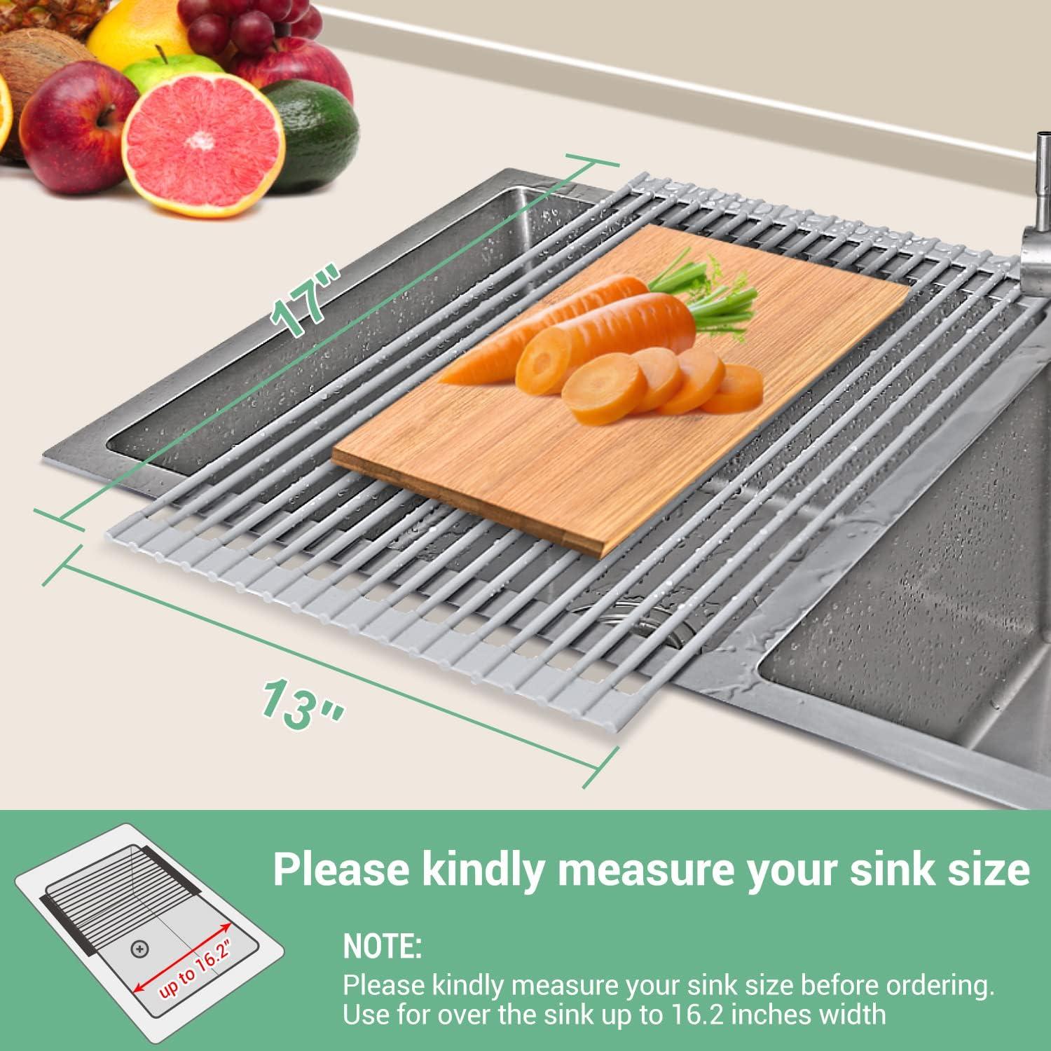 FITS SINKS OF SMALL SIZES: This 17×13 in roll up dish drying rack is designed to fit small sinks with the shorter side does NOT exceed 16.2″. [*NOTE* – Please measure your sink before ordering. If your sink is wider than 16.2″ please order a larger model]. NOT for farm's sink with one side not level