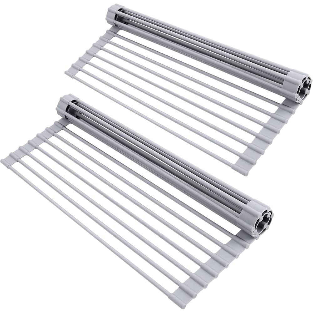 Ohuhu Over Sink Dish Drying Rack, 2 Pack Roll Up Drying Rack 17″ L x 13″ W Heat-Resistant Anti-Slip Silicone Coated Sink Drying Racks Mat for Kitchen Counter Organizer