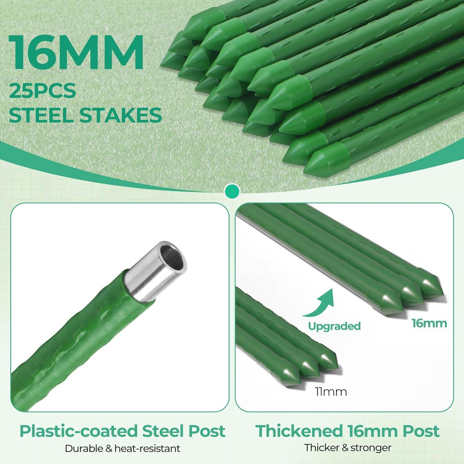 Ohuhu Plastic Snow Fence Set, 3.4FTx100FT Garden Fence Roll with 25-Pack 4FT Stakes Temporary Safety Netting, Reusable Pool Fencing Poultry Fences for Deer Chicken Dog Yard(Green)