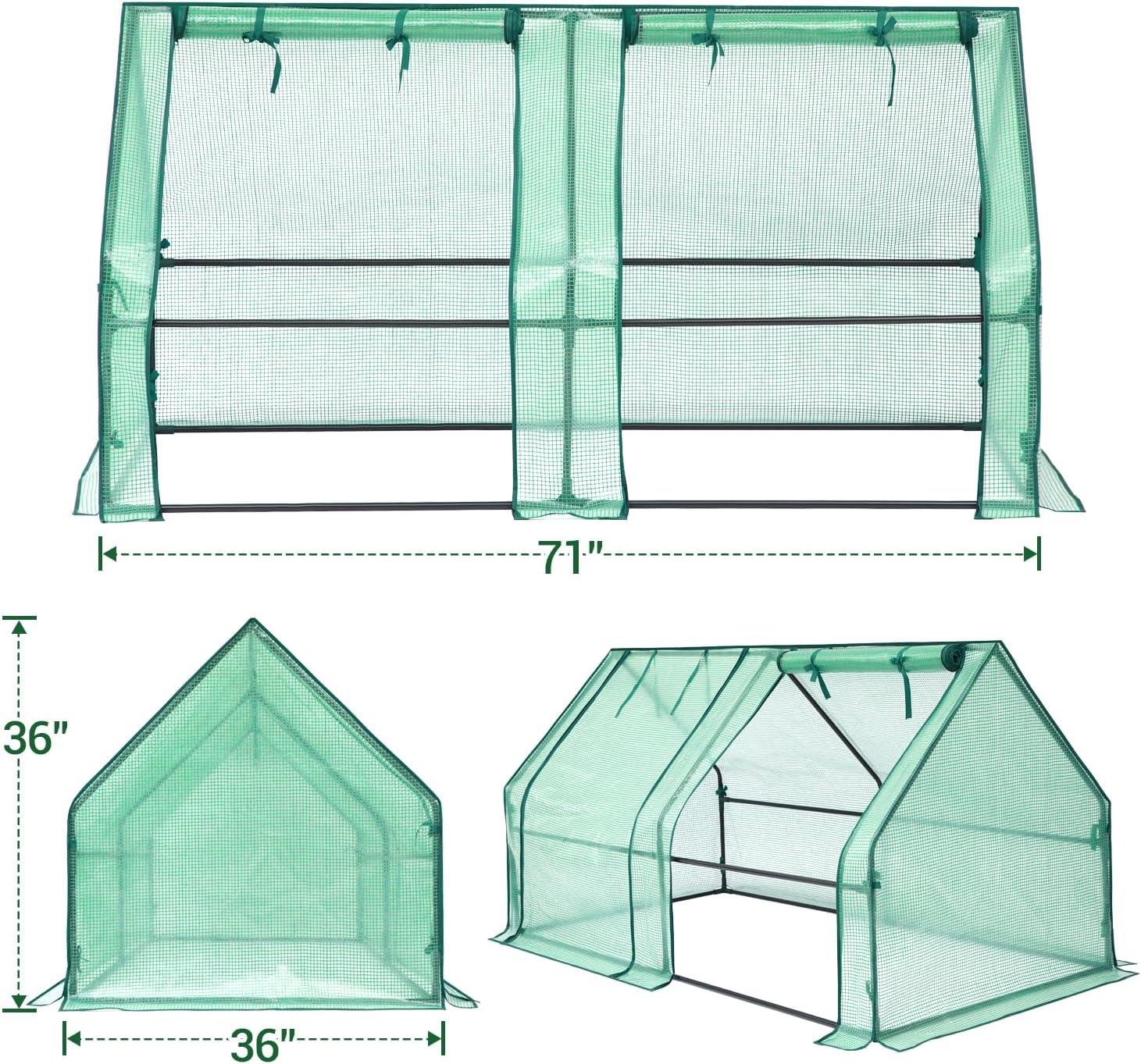 Ohuhu Portable Mini Greenhouse, 71″x36″x36″ Greenhouses for Outdoors with Dual Large Zipper Doors & Ground Stakes, Waterproof & UV Protected Plastic Green House for Outside Garden Patio Backyard(PE)