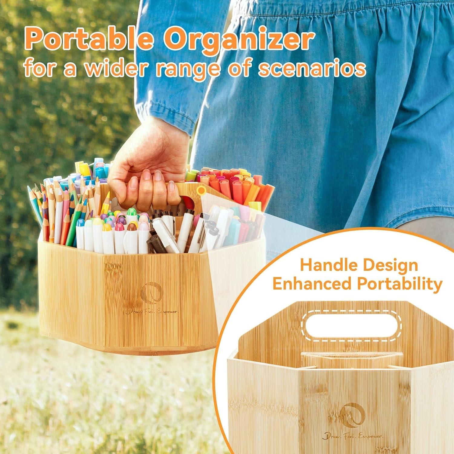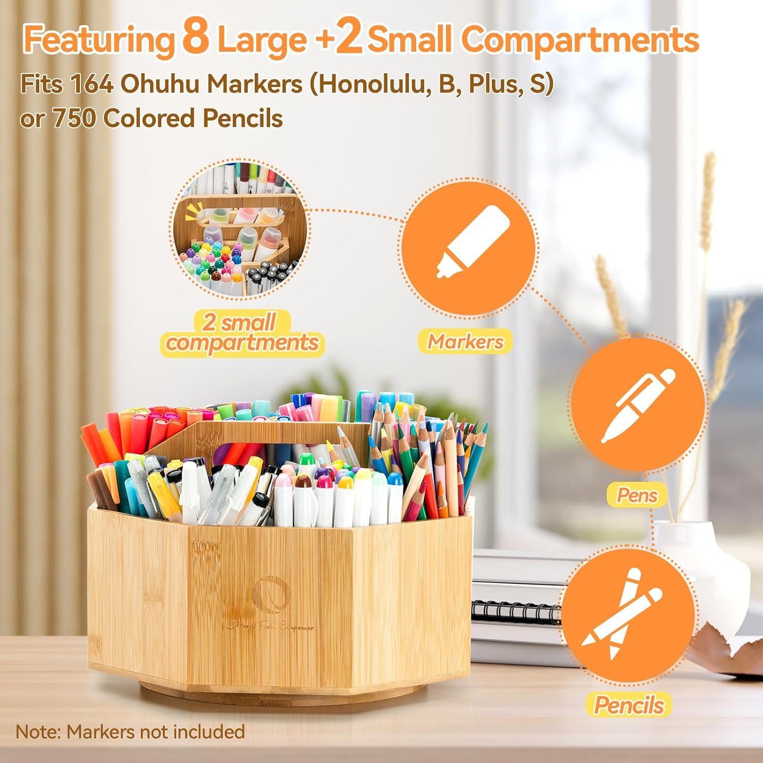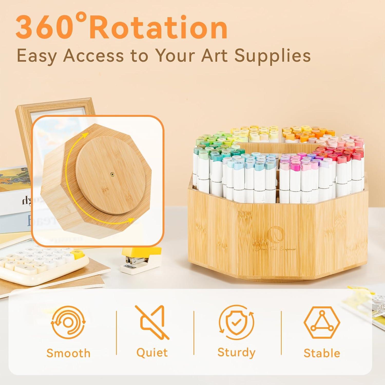 Ohuhu Rotating Marker Organizer for Alcohol Markers, 360-Degree Rotating Bamboo Storage Hold 162 Honolulu& B Alcohol Markers, Pens Pencil Holder with 8 Compartments for Home Classroom Office Decor