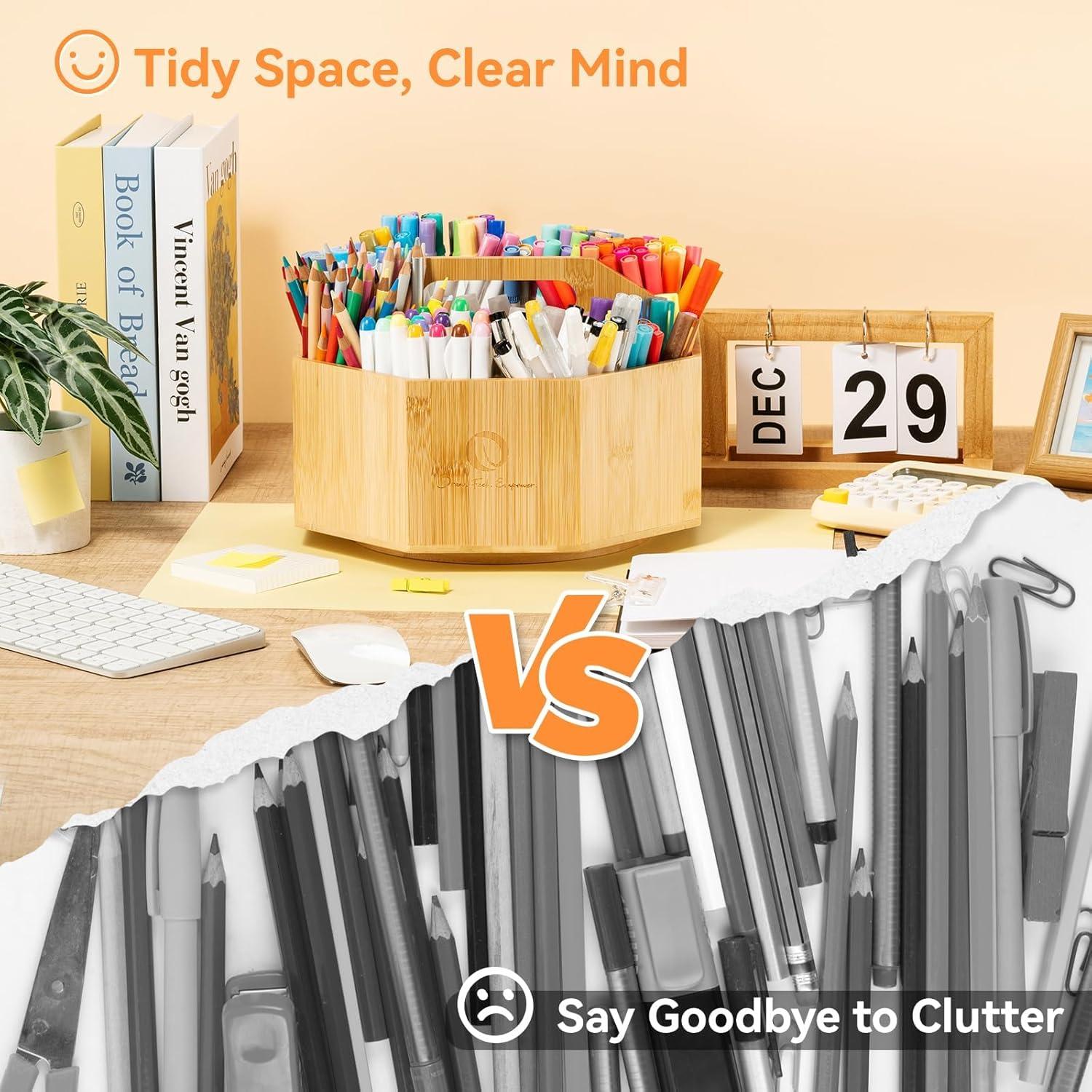 ONE-PIECE, ZERO ASSEMBLY: Unbox & organize instantly – no tools, no frustration. Crafted from 100% natural bamboo, this organizer requires no tools or assemly. Enjoy effortless access to your markers, plus the benefits of a durable, sustainable, and easy-to-clean design built to last.