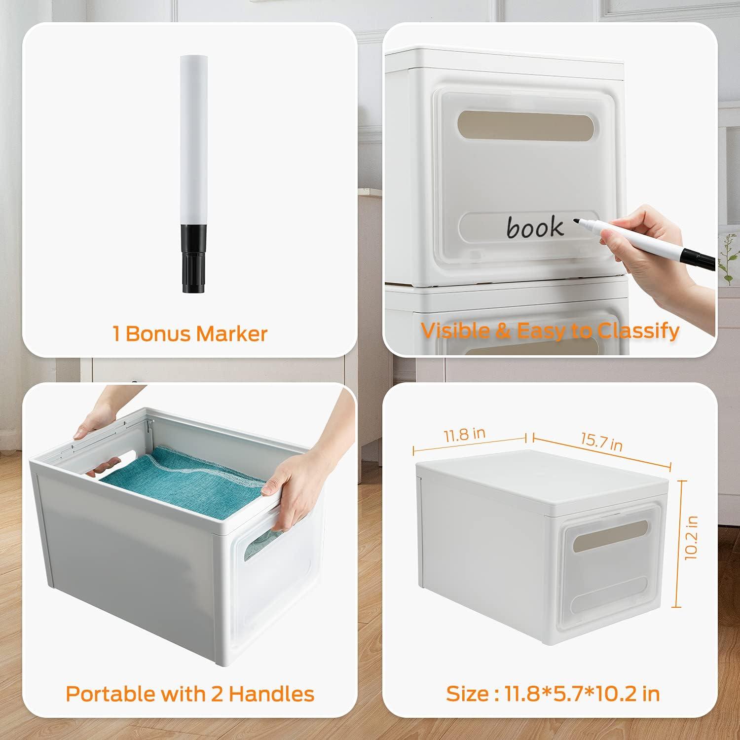 Ohuhu Storage Bins with Lids, Heavy Duty 3 Pack Plastic Storage Box, Front Opening Storage Cart, Compact Cube Organizer Bins with 4 wheels Stackable for Home Office Organization with Black Pen