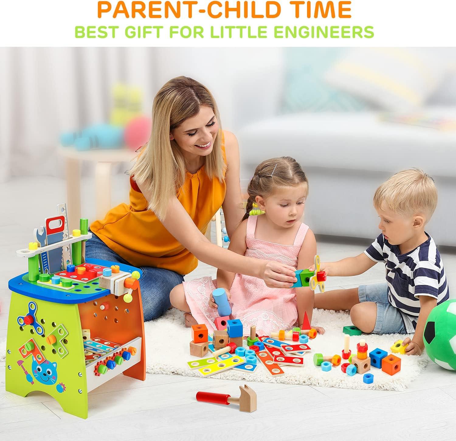 Ohuhu Tool Workbench Toy Set: Kids Toy Play Workbench Kids Wooden Tool Bench Workshop 89Pcs Workbench with Tools Set Wooden Construction Bench Toy for Boys Girls Age 3 4 5 6 7 Birthday Christmas Gift