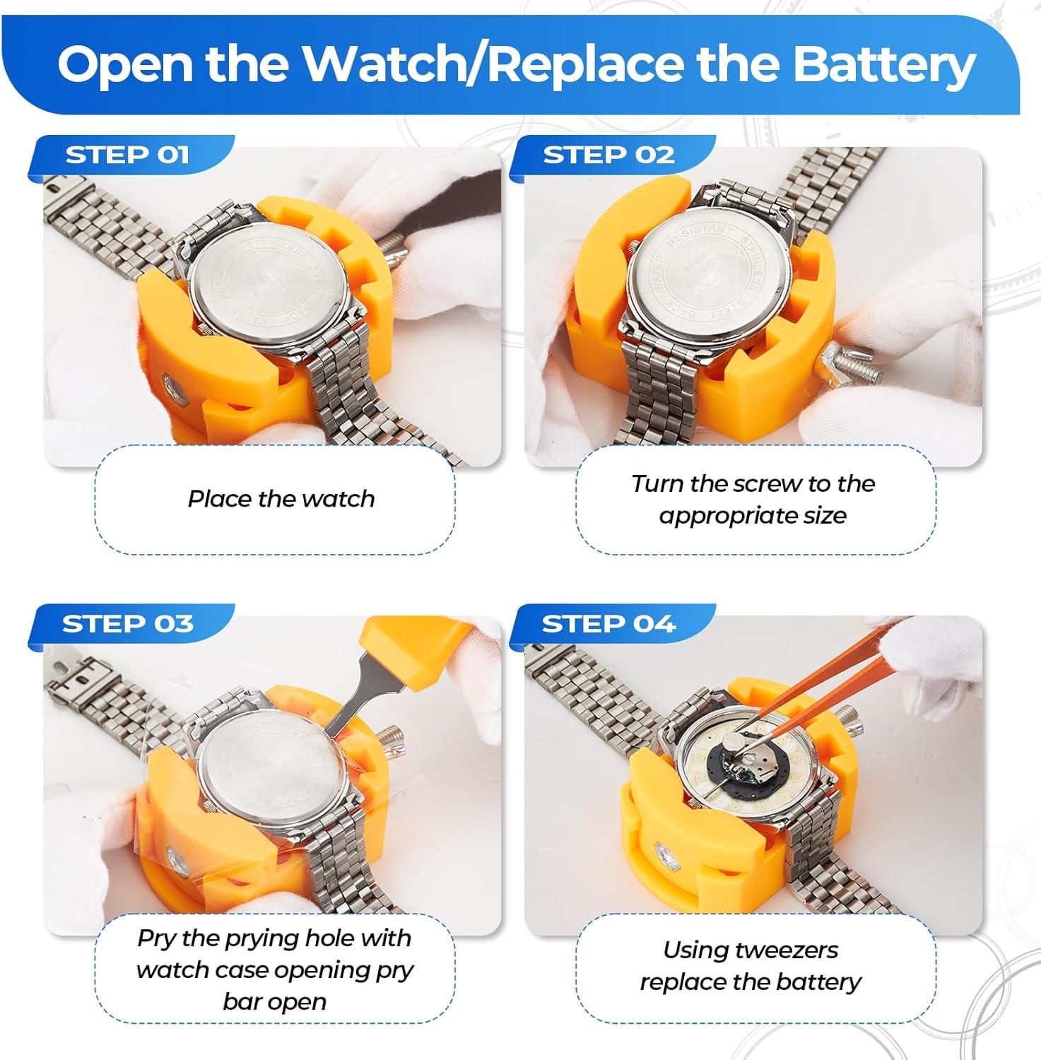 TWEEZERS & CLEANING CLOTH: Our tweezers make battery removal or installation simple. The included microfiber cloth protects your watch from scratches when prepping other repair tasks.
